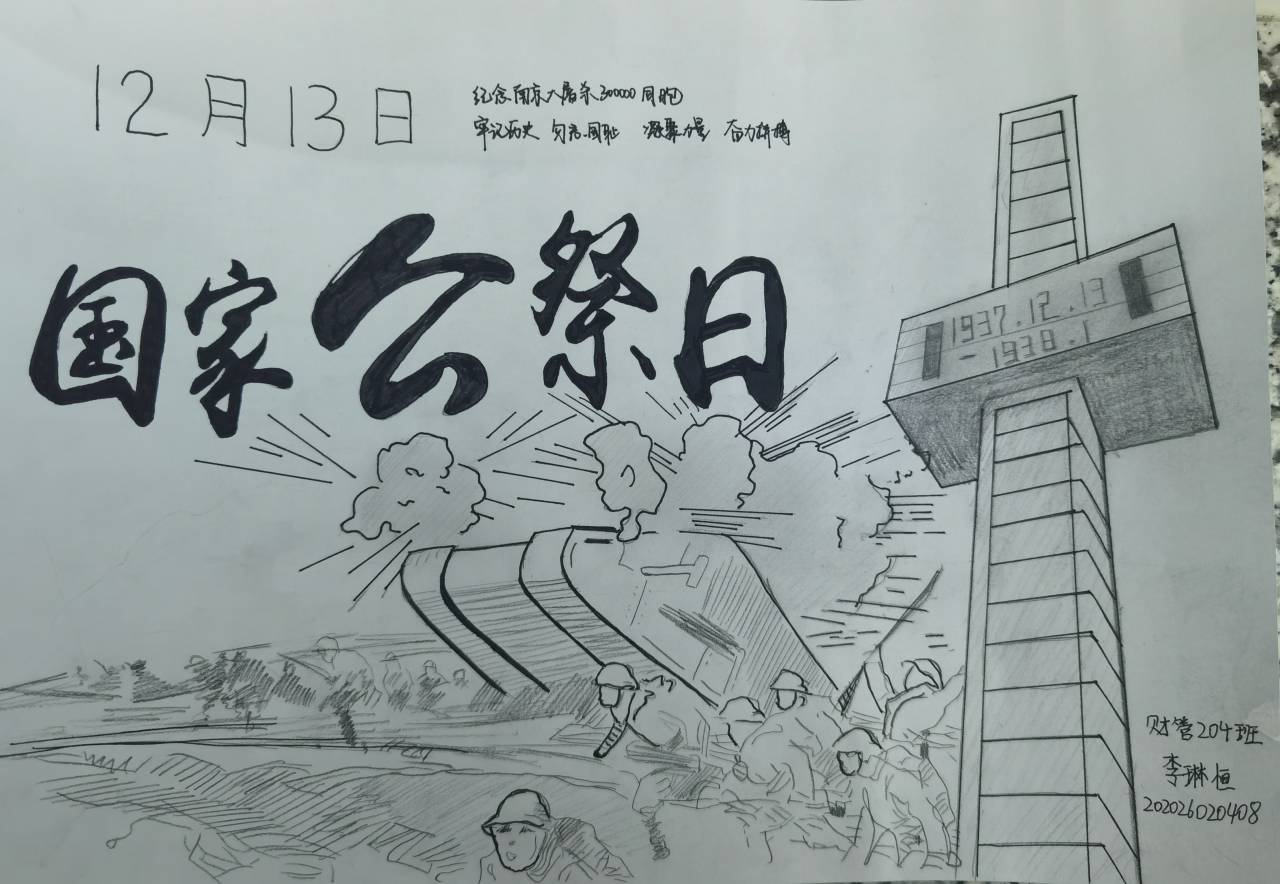 为祭奠在南京大屠杀中死去的同胞,促使学生铭记历史,勿忘国耻,增强爱国主义。2020年12月5日,管理工程系团总支对此开展以“国家公祭日”为主题的绘画比赛。