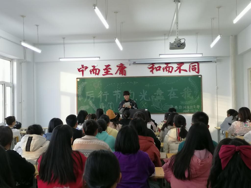 团活开展前,各班团支部已画好板报,准备好材料,通过部员们讲述勤俭节约的重要性与相关小故事,引导学生树立勤俭节约意识,切实养成勤俭节约的良好习惯,并以“我是光盘行动践行者”的形式,轮流上台演讲,增长学生们的饮食文化知识,了解校园就餐制度。