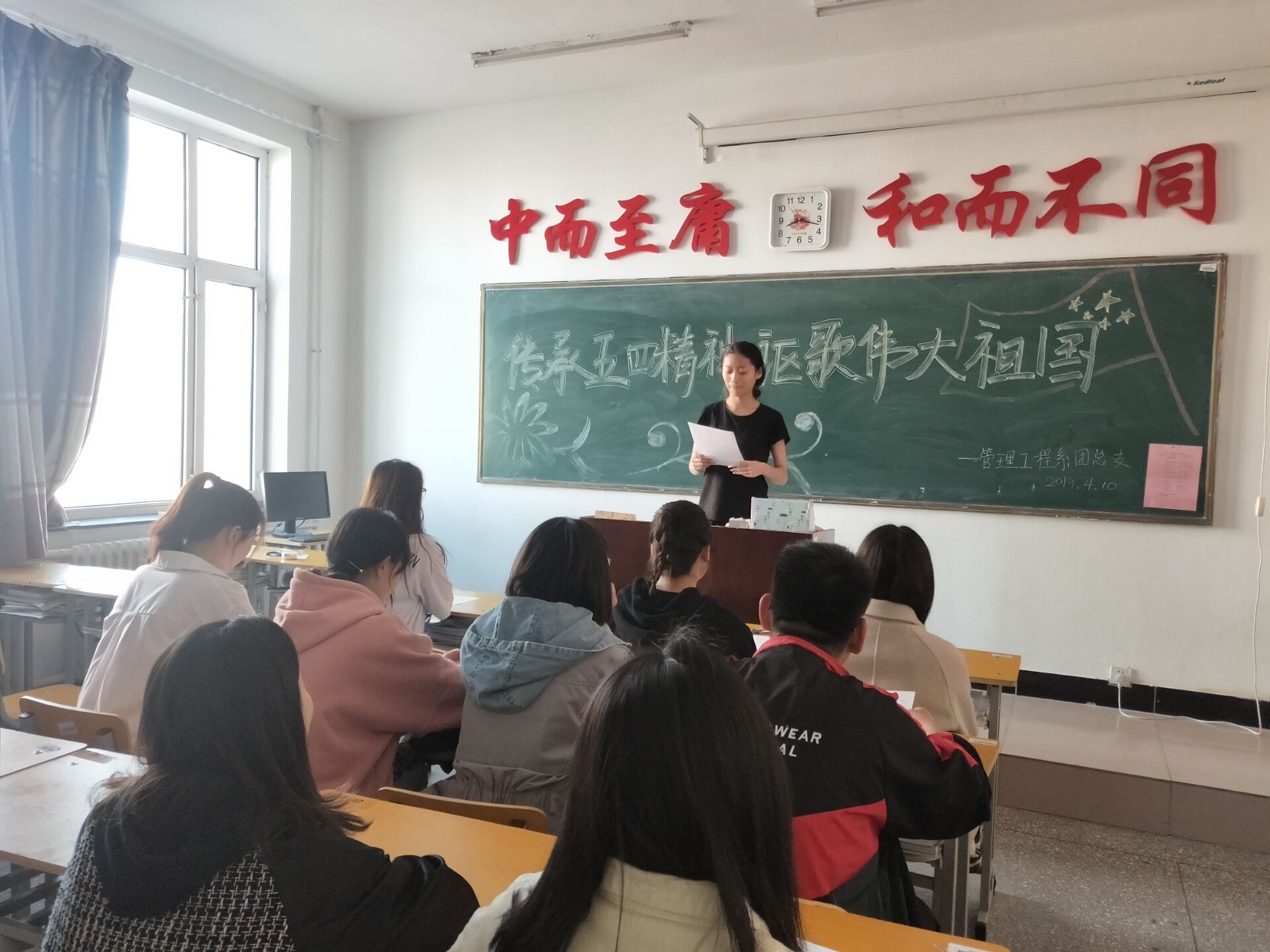 2019年4月10日,管理工程系团总支在3#1205教室开展 “传承五四精神,讴歌伟大祖国”主题演讲比赛。